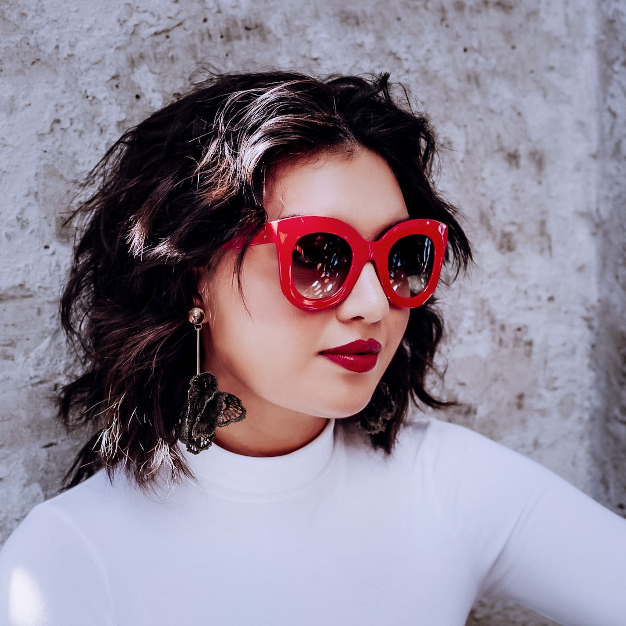 Teuila Fatupaito's stylish oversized sunglasses with a cat-eye flair. The Ms. Jackson frames will have you unapologetically looking fresh and cool while answering to know one.